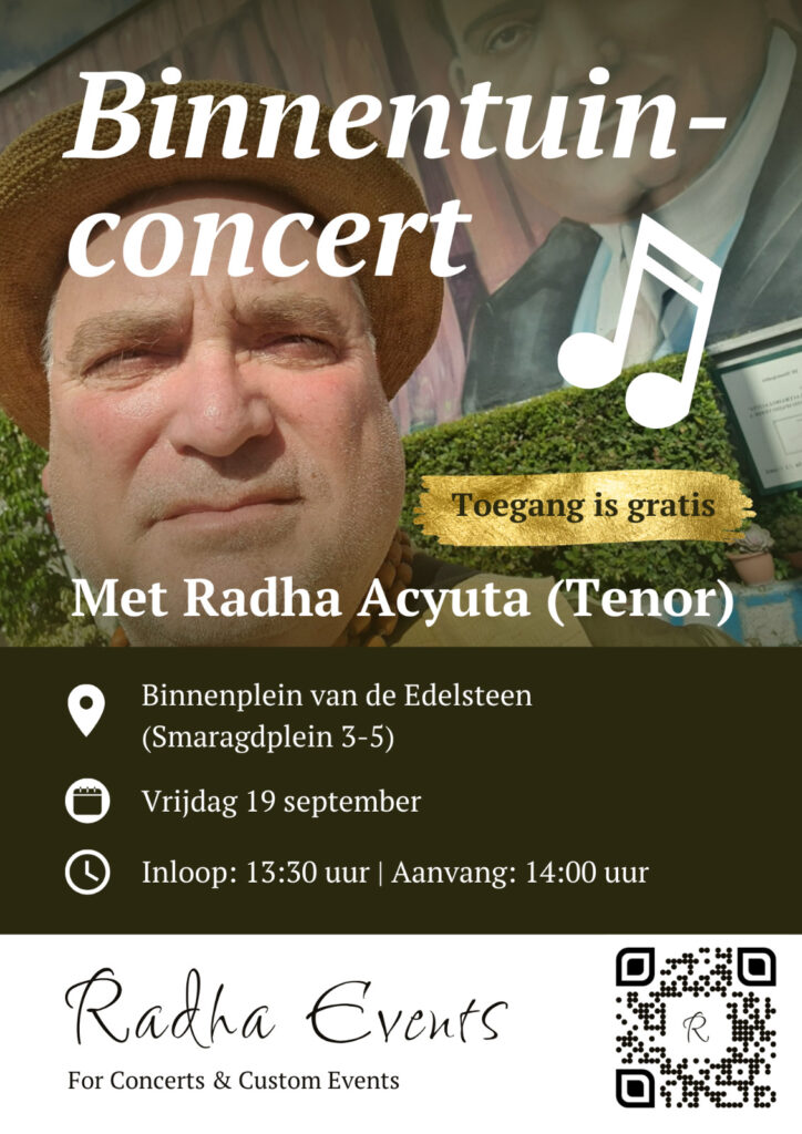 Radha Acyuta, de Amsterdamse Operazanger, is opgegroeid in de Jordaan en heeft reeds op jonge leeftijd de liefde voor zang en de mystieke van het leven en klank ontwikkeld.